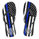 Thin blue line style American flag. A Black white and cobalt blue American flag symbolic of law-enforcement. This is featured on a pair of custom monogram sandals.
