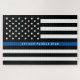 This police thin blue line puzzle features a black and white police thin blue line American flag Personalise by replacing sample name with your own officer's name. Makes a great gift.