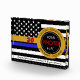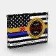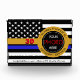 Glass Photo Block: Thin Blue Line & American Flag (USA) - enforcement / police themed - love my country, retirement, appraisal, patriots / sports fans