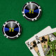 Our beautiful Thin Blue Line poker chips can be customised with or without the chip value. Using the customise tool you can also change the chip value to suit your level of card game play and/or the chip value colour, or you can remove the chip value entirely. All of our poker chips feature an exclusive, original art design not found anywhere else. Be sure to visit our custom playing cards too.