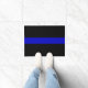 Thin Blue Line Door Mat.The Thin Blue Line is a colloquial term for police forces. It may refer to the police as a "line" standing between good and evil (citizens and perpetrators), or may refer to the "line" that separates the police as in in-group from everyone else (with positive, negative or mixed connotations, depending on the person using the expression). Add text .customise and personalise ,if desired.