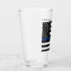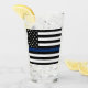 Thin blue line. This glass is to show your support for the policemen and policewomen that protect the streets. It is a glass that you can use for refreshing drinks. It can be used to remember a fallen officer or to celebrate someone just starting out or even as a retirement gift.