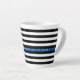 Show your support with this thin blue line American flag latte mug. This design features a black and white flag with thin blue line with a name and place of work for you to personalise. The perfect gift for family and friends that are police officers and in law enforcement. Designed by world renowned artist ©Tim Coffey.