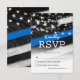 Police themed response cards featuring a US flag with the thin blue line, string lights, and a law enforcement rsvp template that is easy to personalise.