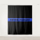 Our Thin Blue Line Tapestry is designed to honour the men and women of the front line who risk their lives each and every day to maintain peace in our communities. Without the our police, deputies and other law enforcement personnel the world would be a much more dangerous place. This design is perfect for any man cave, meeting room, office, conference room or even in your home. Display this universal symbol of those behind the badge proudly and honour those who have given their lives in the line of duty while showing your support for those who have bravely stepped up and filled their shoes. This design makes a great adornment for a police department lobby wall or a drape for second floor railing, banister or interior window. Feel free to customise it an add text to it if you like, such as an agency name, motto or accreditation.