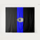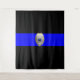 Our Thin Blue Line Tapestry is designed to honour the men and women of the front line who risk their lives each and every day to maintain peace in our communities. Without the our police, deputies and other law enforcement personnel the world would be a much more dangerous place. This design is perfect for any man cave, meeting room, office, conference room or even in your home. Display this universal symbol of those behind the badge proudly and honour those who have given their lives in the line of duty while showing your support for those who have bravely stepped up and filled their shoes. This design makes a great adornment for a police department lobby wall or a drape for second floor railing, banister or interior window. Feel free to customise it an add text to it if you like, such as an agency name, motto or accreditation.