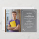 Against this trendy chalkboard background is a thin double frame with cut corners. Your wording is embellished with two corner leaves and a centre filigree which can be dragged to any location, made large or smaller or eliminated. Perfect for any graduation party celebration.
