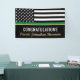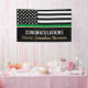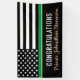 This graduation design features a military flag with black and white stripes, and a thin green line stripe as well. The gold army boots sits above the name of the retiring sergeant, captain, soldier, lieutenant or general.