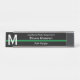 This elegant nameplate is the perfect choice for those in the military, border control, park rangers and conservation officers. It features a thin green line design with your monogrammed initial on the left in white typography and your workplace, name, and title to the right with a thin green line across the middle on a black backgound. I enjoyed creating this design for you. Hope you like it! Designed by artist ©Susan Coffey.