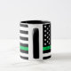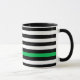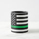 A unique police thin green line American flag custom name mug. The thin green line running across the center is representative of Border Patrol, Park Rangers, and Game Wardens.