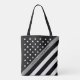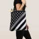 Show your support with this patriotic black and white thin grey line American flag tote bag. Personalise by replacing the sample name with your own for a one of a kind gift for friends and family who are correctional officers.. Designed by world renowned artist ©Tim Coffey.