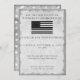 Invite your retirement party guests in style with this thin grey line flag invitation perfect for correctional officers and those in corrections. This design features a background of silver grey with a thin grray line correctional officer flag and your party details in grey typography separated by white stars. The back of the card has a pattern of white stars on silver. Designed by world renowned artist ©Tim Coffey.