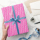 A wrapping paper designed with a hot pink and white wavy pattern in thin width. You can change the pink for a different colour.