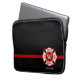 A big red line fire rescue themed laptop case. It features a Maltese cross at the centre for your monogram of your first or last name or that of your gift recipient. Underneath the Maltese cross is a spot for the person's name or last name. An awesome customised gift for that favourite firefighter in your life.