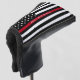 This golf putter cover features a black and white firefighter thin red line American flag design with stars and stripes on a black background and a name for you to personalise.
