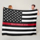 This large size blanket features a black and white firefighter thin red line American flag along with a name for you to personalise. Small and medium sizes also available in our collection.