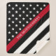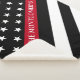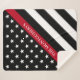 Show your support with this patiotic thin red line firefighter flag blanket. This design features a black and white American flag with stars and stripes and a thin red line at an angle and a family name for you to personalise in white typography. Designed by world renowned artist ©Tim Coffey.