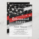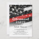 Firefighting retirement party invitation to celebrate a firefighter retiring from service. Featuring a us flag with the thin red line, string lights, and a modern party template.