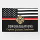 This design features a firemen's flag with black and white stripes, and a thin red line stripe as well. "Congratulations" and a fireman's badge sits above the name of the graduating or retiring firefighter, lieutenant, or chief. Celebrate in style!