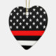 Celebrate the heroes of the fire service with the Thin Red Line USA Ceramic Ornament. This poignant design features a monochrome American flag accented by a single, bold red stripe—the universal symbol of the "Thin Red Line." This line represents the brave men and women who stand between the public and the ravages of fire, honoring both the fallen and those who continue to serve their communities with valor.