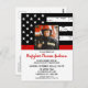 Celebrate your retirement and invite friends and family to your firefighter retirement party with this Thin Red Line Firefighter Retirement Invitation - USA American flag design in Firefighter Flag colours , distressed design . Personalise with name, fire department, address venue, and rsvp details. This firefighter retirement invitation can be used for firefighter graduation, simply change the text when personalising.See our collection for matching fireman retirement gifts, party favours, and supplies. COPYRIGHT © 2020 Judy Burrows, Black Dog Art - All Rights Reserved. Thin Red Line Photo Firefighter Retirement Party Invitation Postcard