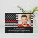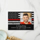 Thin Red Line American Firefighter Flag Memorial Funeral Thank You Card. This firefighter funeral thank you card features a Thin Red Line Firefighter Flag on a black background. "In Loving Memory" Personalise this firefighter thank you card with your loved ones photo, name & dates, and personal message and name on the back. This fireman photo funeral thank you card will be a treasured keepsake. Perfect for a firefighter funeral, and fireman memorial service or celebration of life. In Loving Memory Firefighter Memorial Thin Red Line Flag. COPYRIGHT © 2020 Judy Burrows, Black Dog Art - All Rights Reserved. Thin Red Line Sympathy Firefighter Memorial Funeral Thank You Card