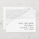 An elegant wedding save the date invitation featuring a think black striped pattern at top.  Matching wedding invitations and other coordinating items can be found at Jill's Paperie.
