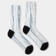 This pair of socks features thin watercolor stripes in shades of slate blue and gray on white for a contemporary modern look.