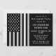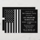 Invite your guests in style to with this EMS EMT retirement party invitation card. This design features a thin white line American flag on a black background. To the right is all of your party details for you to personalise. The back of the card is black with a thin white line and across the centre it reads "Celebrating 25 Years of Service" (number of years may be personalised).