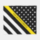 Show your support with this patiotic thin yellow line disparcher flag fleece blanket. This design features a black and white American flag with stars and stripes and a thin yellow line at an angle and a family name for you to personalise in black typography. Designed by world renowned artist ©Tim Coffey.
