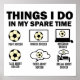 Soccer lover funny quote design 6 Things I do in my spare time, for women, men, girls and boys. Humourous outfit for soccer lovers who love to play soccer, watch soccer, research soccer, talk, think and dream about soccer. It makes a great funny present idea for any soccer player and fan. Perfect apparel for football fan dad, mum, brother, sister, son, daughter, uncle, aunt, friend, coworker... Grab it for birthday, father's day, mother's day, parents day... Wear this to school, work, outdoors, soccer party game,..