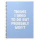 Things I Need To Do But Probably Won't Humour Note Notebook