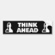 Think Ahead funny pawn chess piece bumper sticker. Cool sticker for chess lover, player, friends, fan, dad, grandpa, boss, coworker, teacher, student etc. Use ALT code to change the icon into a pawn, rook, bishop, knight, queen or king. ♕♔♘♗♖♙ ♚♛♞♝♜♟