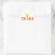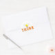 A simple design that says "Think" with a light bulb dotting the letter "I" in yellow and orange. There are wavy lines around the bulb that could arguably represent Albert Einstein's unkempt hair.