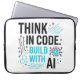 "Guard your tools with this builder's sleeve featuring 'Think in Code Build with AI' - military-grade neoprene absorbs shocks while inspiring creation. Water-resistant + fits 13-16" laptops with anti-slip base. Essential for developers crafting AI solutions. **Secure your innovation partner today!**"
