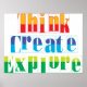Think,Create and Explore is a great reminder that you can do these things to broaden your horizons. This will be a great addition to the classroom, campus or office. Educators get your students to think, create and explore the possibilities! Managers put this up in the workroom to inspire your employees.