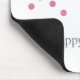 This mouse pad features a fun confetti pattern and the motivational phrase: think happy be happy.