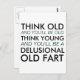 Think Old and You'll Be Old. Think Young and You'll be a Delusional Old Fart. Funny aging and getting older humour quote / saying. All text can be customised