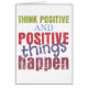 Positive affirmation that reads Think Positive and Positive Things Happen! Great earthy colours promoting a peaceful personal mantra about thinking positive!
