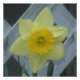 Single Daffodil in full bloom in front of white lattice.