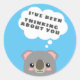 Illustration of a cute Koala bear with thought bubbles and text reading: "I've been thinking about you".