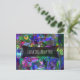 This vibrant, unique postcard is perfect for dropping a note to anyone you've been missing. The background was covered in a piece of digital artwork I did during a cheerful, chaotic design session. Hues of blue, green, purple, hot pink, yellow and turquoise fill the squiggles and lines and create a happy mess. It reminds some people of stained glass. Over that is a partially-opaque black horizontal badge overlaying the centre. The message, "Thinking About You!" is rendered in a modern, casual font. Both the message and the font can be changed to whatever you'd like it to say. Likewise, with the overlay and background separate, you might even choose to enlarge or re-position those elements too. Enjoy!