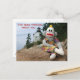 SockMonkey's always thinking; just not sure what he's thinking... Friendship postcard to let someone know that you are thinking about them.