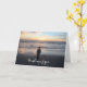 This child gazing out onto the wonder of the vast ocean makes me think of all the beauty and possibility in the world. The beautiful sunset goes down on the horizon of the beach landscape. Inspirational beach card that reads Thinking of You.