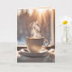 A steaming cup of coffee on a saucer with a warm blanket by winter window for thinking of you.