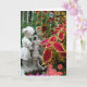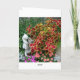 Nature floral photography, of a vibrantly coloured coleus plant, impatients, and a garden, boy, girl, pump figurine, and an inspiration "thinking of you" saying adorn this card