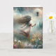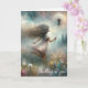 A young girl with flowing hair is depicted running through a field holding a large dandelion seed head in Monet artwork style for thinking of you.