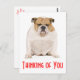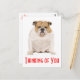 This fun Thinking of you postcard features a grumpy English Bulldog puppy dog highlighted against a creamy white background.