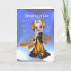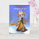 This Thinking of you card has has a cute little fairy wearing monarch butterfly wings for a skirt. She has a cute pensive longing look on her face.The fairy is holding a bouquet of gold flowers, She is on a blue ombre background with a heart shape made of pearl like orbs behind the text. You can edit the inside text.