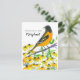 A "Thinking of You from Maryland" post card decorated with a Baltimore Oriole bird on a branch with yellow Black-Eyed Susans illustrated with ink and watercolor. Inspired by the state bird and state flower of Maryland. You can edit or remove the text to fit your needs.